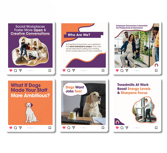 Cognitive Connections is a workplace training company transforming how businesses support and empower their teams, especially those who are neurodivergent. They go beyond traditional upskilling by helping companies understand and optimize the entire system; people, processes, and culture. Our flagship offering is a one-day, in-person course that helps employees identify their strengths and challenges. Each team member receives a personalized working profile, enabling leadership to align tasks and projects to both individual talents and company goals. This tailored approach boosts productivity, enhances project outcomes, and increases employee retention, ultimately saving time and money. But the impact doesn’t stop there. By fostering more engaged, fulfilled employees, Cognitive Connections helps build healthier, more connected communities beyond the workplace. The branding for Cognitive Connections was intentionally designed to stand out in the corporate landscape. Steering away from the conventional blues and greens typically associated with workplace training and consulting, a vibrant palette of purple and orange was chosen to reflect the company’s unique positioning and values. Orange was selected for its associations with creativity, energy, and innovation, qualities that reflect the dynamic and forward-thinking nature of the business. Purple, on the other hand, conveys wisdom, individuality, and a sense of distinction, aligning with Cognitive Connections’ focus on neurodivergence and systemic change. The use of a clean, modern sans serif font helps establish professionalism and trust, key attributes when working alongside corporate clients. The balance between bold, unconventional colours and a classic, accessible typeface reflects the core essence of the brand: innovative yet grounded, inclusive yet professional, and above all, human-centred.